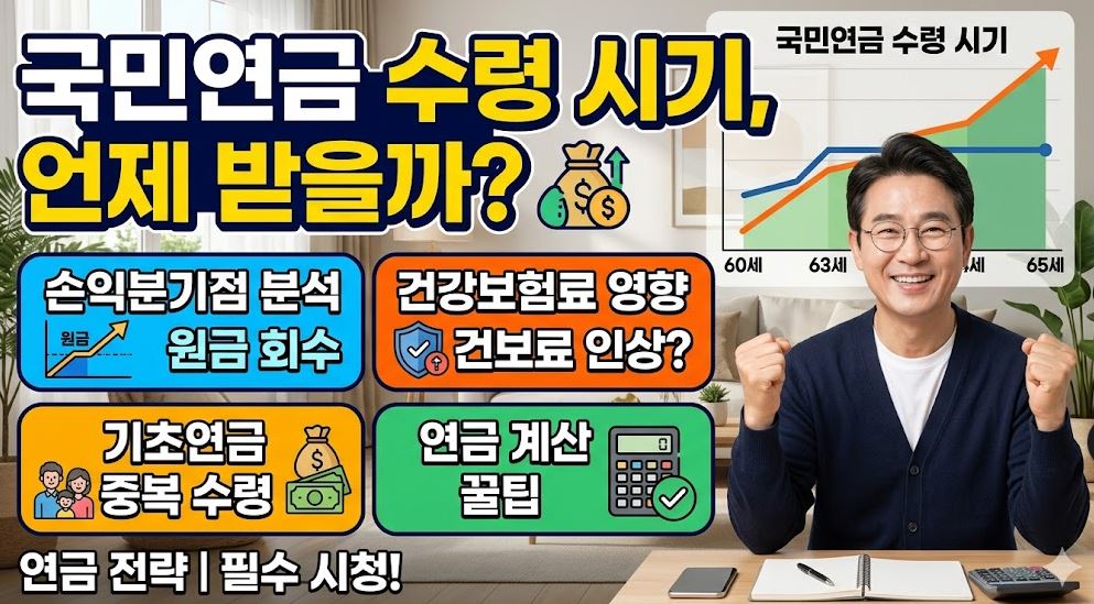 국민연금 조기수령은 최대 30% 감액, 연기수령은 최대 36% 증액이며 손익분기점은 77~78세입니다. 수령액이 늘어날수록 건강보험 피부양자 자격 박탈·기초연금 감액이라는 역설적 불이익이 발생할 수 있어, 단순 숫자 비교가 아닌 내 상황에 맞는 종합 판단이 필수입니다.